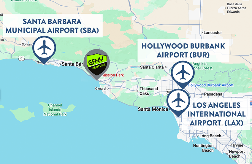 Ventura is conveniently located near three main airports, offering different options depending on your travel logistics: